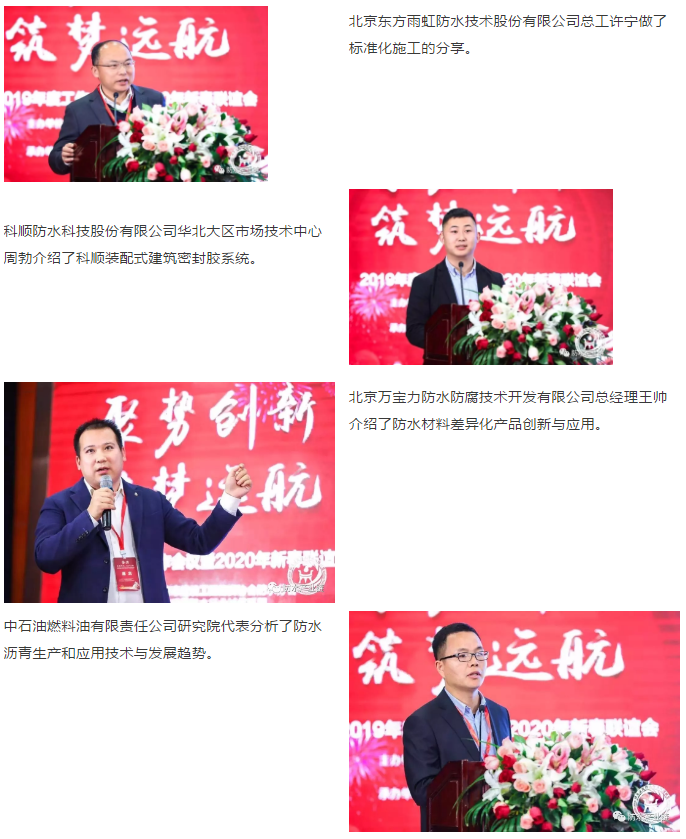 12月29日,由北京市建設(shè)工程物資協(xié)會防水分會、北京建筑防水行業(yè)誠信聯(lián)盟主辦,北京東方雨虹防水技術(shù)股份有限公司承辦的2019年度工作會議暨2020年新春聯(lián)誼會在北京召開。本次會議以“聚勢創(chuàng)新,筑夢遠(yuǎn)航”為主題,圍繞企業(yè)創(chuàng)新發(fā)展、協(xié)作共享的中心議題展開。