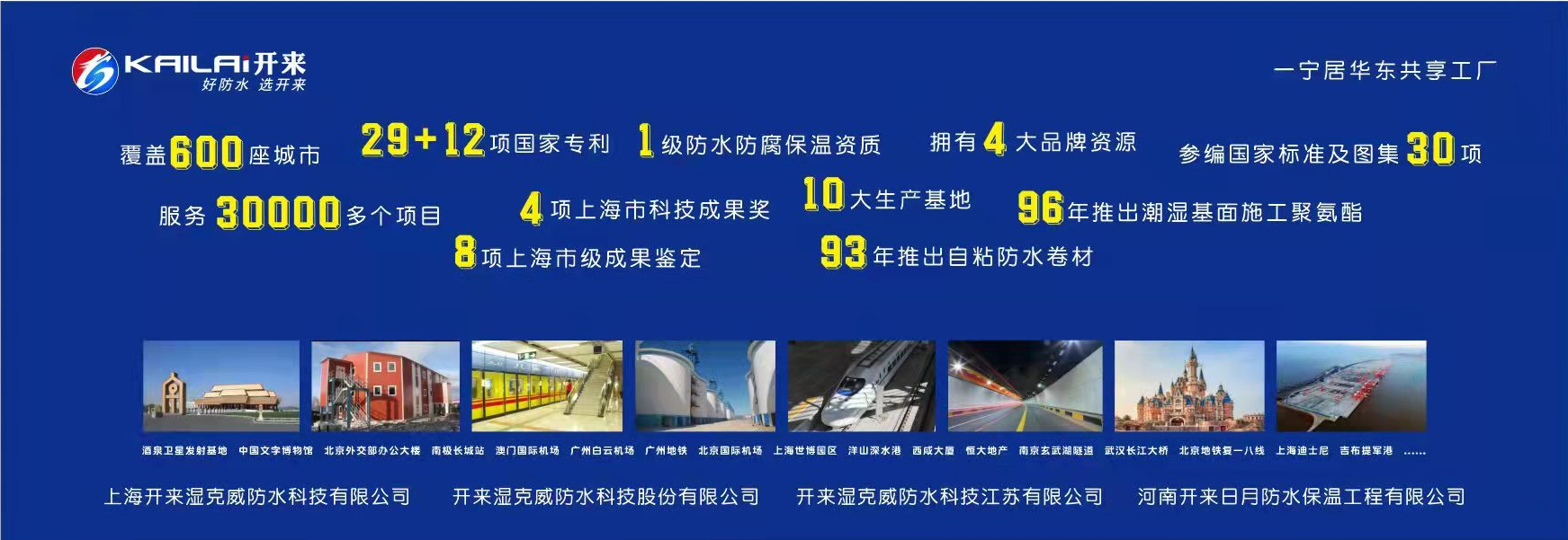 旗下?lián)碛小伴_來”、“SECOV(濕克威)”、“樂活”、“一寧”4大品牌,國家級防水防腐保溫工程壹級資質(zhì),網(wǎng)絡覆蓋中國600座城市,服務過30000多個項目,42項國家專利,參與國家標準及圖集30項,8項上海市級成果鑒定,4項上海市科技成果獎,我們以呵護人類建筑安全為己任,通過“一個電話所有事情我來辦”和“360°品控,全程品質(zhì)可追溯”來踐行防水全程無憂的承諾。是一家集防水卷材、防水涂料、家裝防水材料、堵漏密封材料、瀝青瓦、道橋防水材料、施工設備的研制、生產(chǎn)、銷售、施工、技術咨詢服務于一體,并具有自營進出口權的ARMOR(鎧甲)防水系統(tǒng)提供商。